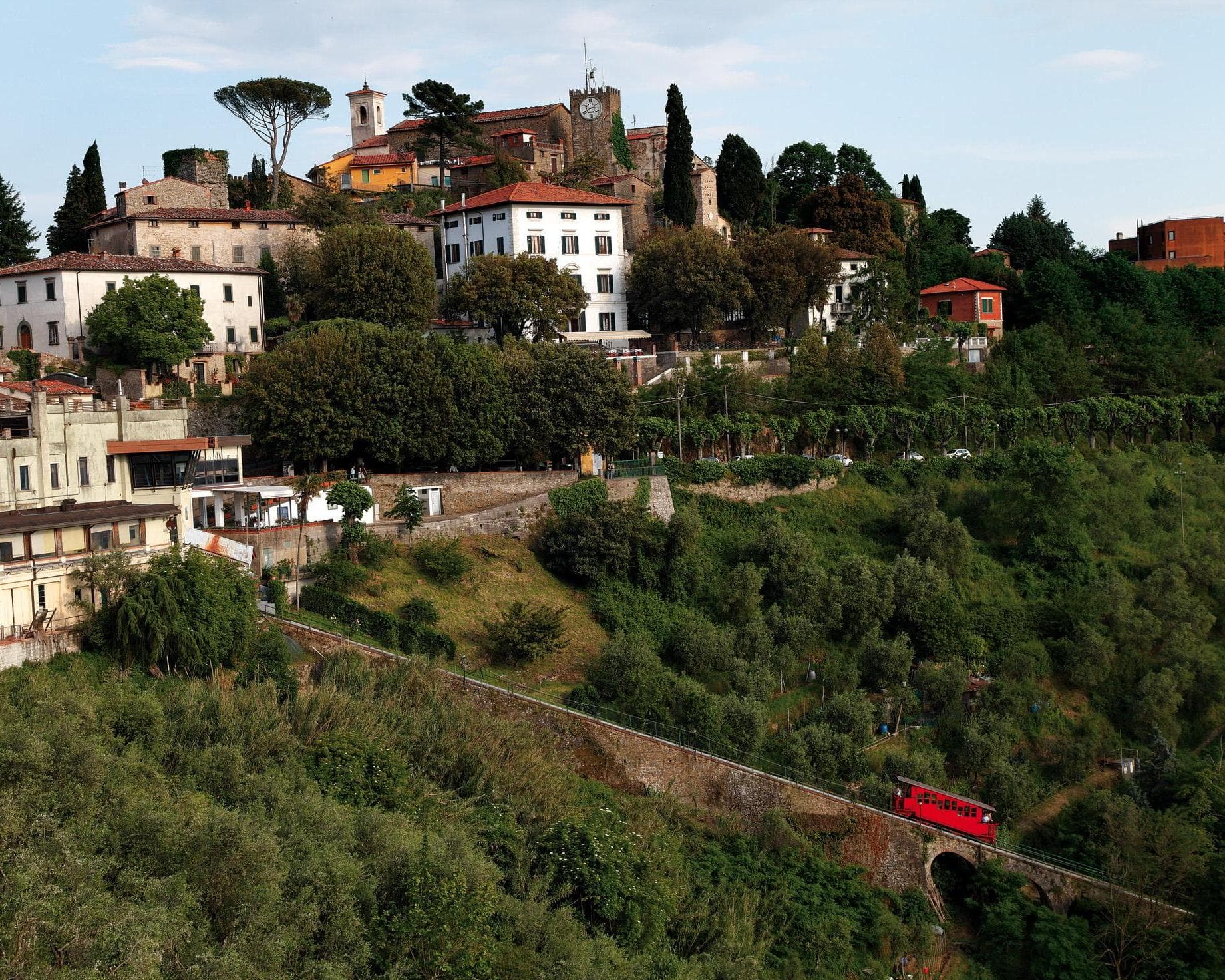The square, which has stone flooring, Art Nouveau decorations, and is home to the Teatro dei Risorti, is a true treasure of the medieval village. Walking from one hill to another to discover the Tower, the Fortress, and the churches you will find in the center. Taking a walk in Montecatini Alto is a pleasure for the eyes. The main square is full of restaurants, where you can taste a good wine and taste typical Tuscan recipes. The best and delightful way to reach the top [from Easter to October 31st] is to use the funicular. Inaugurated in 1898, it connects the ancient village [station Monte] with the area of the Spa [station Valley]. Two red trains, named Gigio and Gigia, will take you to your destination in just ten minutes. Pulled by a steel cable, it also led Giuseppe Verdi to the summit on his maiden voyage, to enjoy the quiet of the place and have fun with his friends of the past drinking wine in one of the premises of the square.